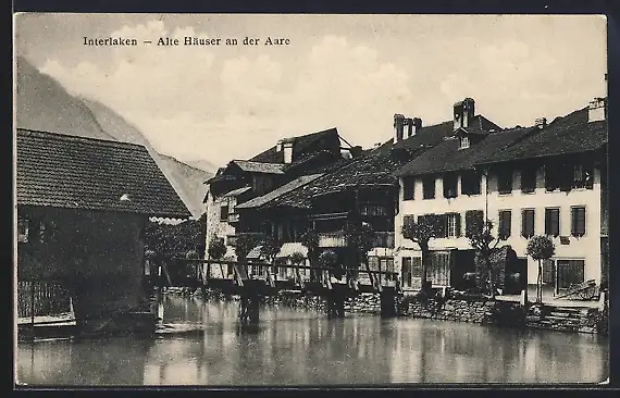 AK Interlaken, Alte Häuser an der Aare