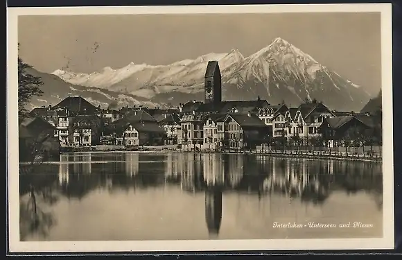 AK Interlaken, Ansicht mit Unterseen und Niesen