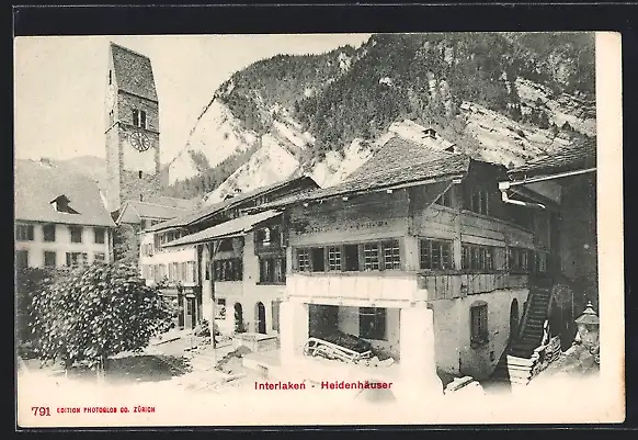 AK Interlaken, Heidenhäuser, Ortspartie nit Turm