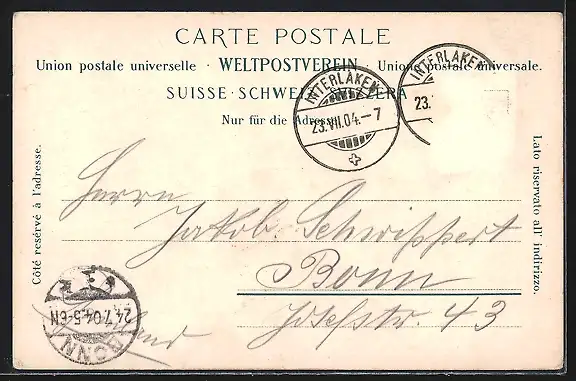 gelaufen 1904, Briefmarke entfernt, guter Zustand