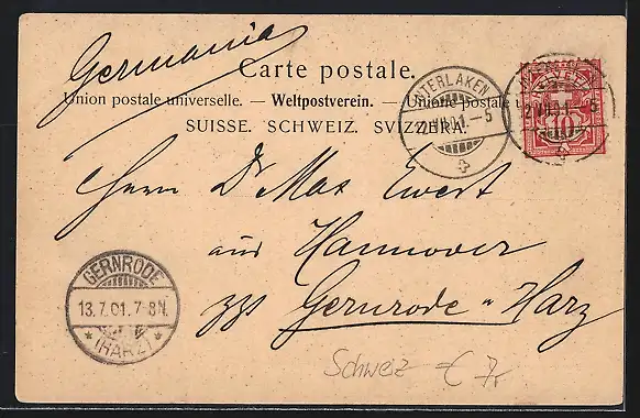 gelaufen 1901, Eckknick oben re., Stempelspur, guter Zustand