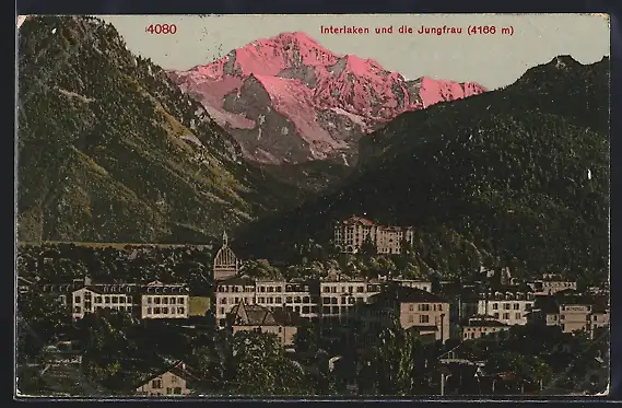 AK Interlaken, Teilansicht mit Jungfrau aus der Vogelschau