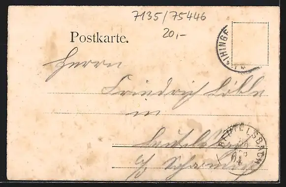 alte Ansichtskarte, gelaufen, Briefmarke entfernt, guter Zustand