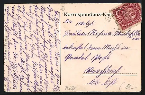 alte Ansichtskarte, gelaufen 1918, re. und unten beschnitten
