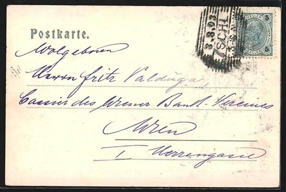 gelaufen 1903, Eckknick re. oben, Stempelspur, guter Zustand