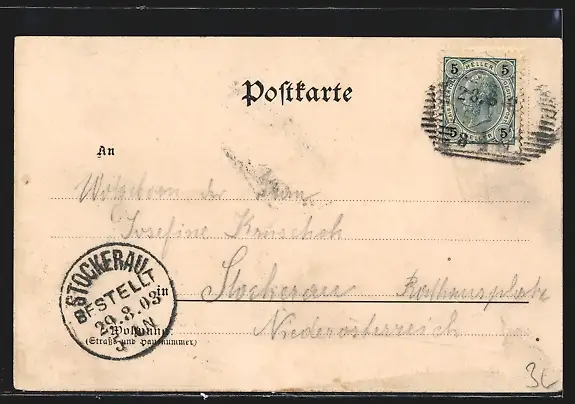 alte Ansichtskarte, gelaufen 1903, Stempelspur, guter Zustand