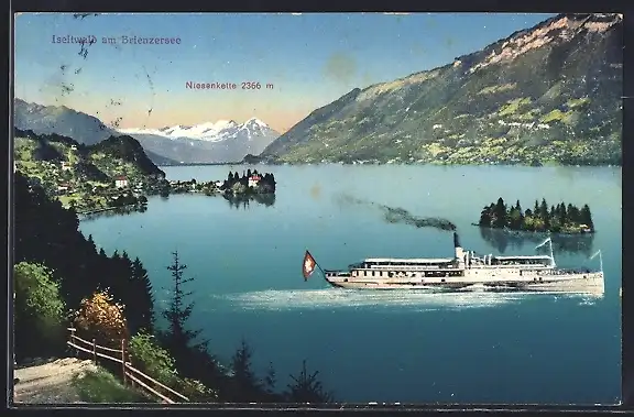 AK Iseltwald am Brienzersee, Dampfer auf dem See