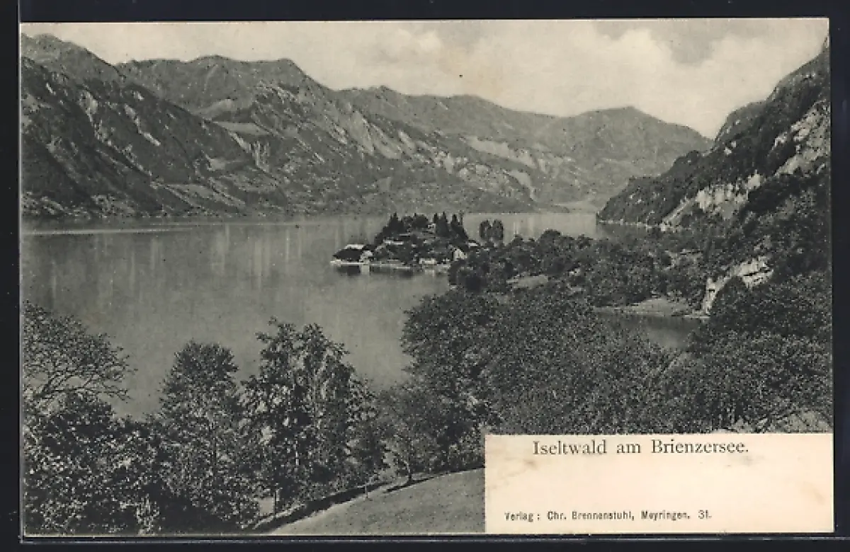 AK Iseltwald am Brienzersee, Panorama mit Bergen