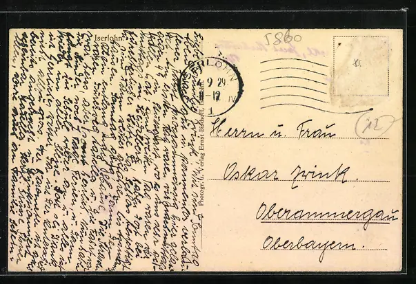 alte Ansichtskarte, gelaufen 1929, Stempelspur, Briefmarke entfernt, guter Zustand