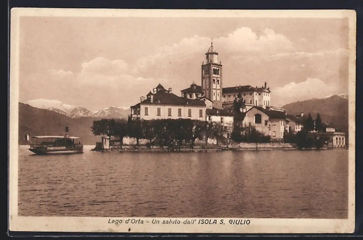 AK Isola S. Giulio /Lago d`Orta, Dampfer vor der Insel