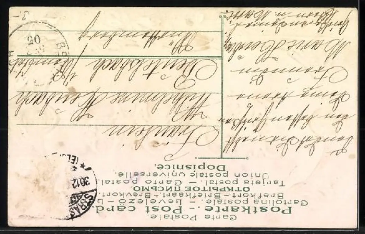 alte Ansichtskarte, gelaufen, Briefmarke entfernt, guter Zustand