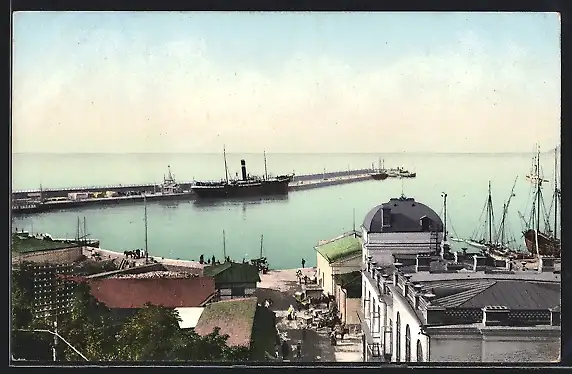 AK Jalta, An der Mole, Dampfer, Segelschiff