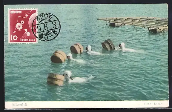 AK Japanische Perlentaucher bei ihrer Arbeit
