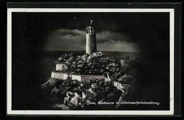 AK Jena, Fuchsturm in Scheinwerferbeleuchtung
