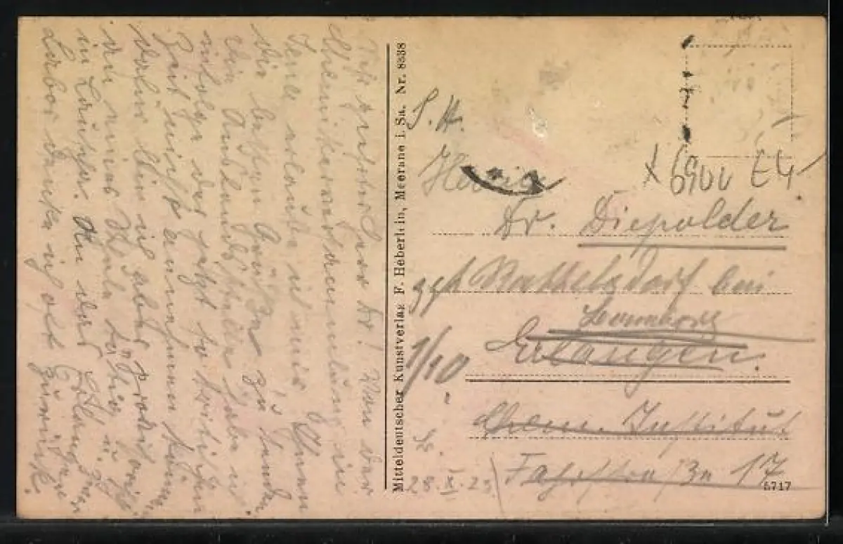 alte Ansichtskarte, gelaufen, Briefmarke entfernt, guter Zustand