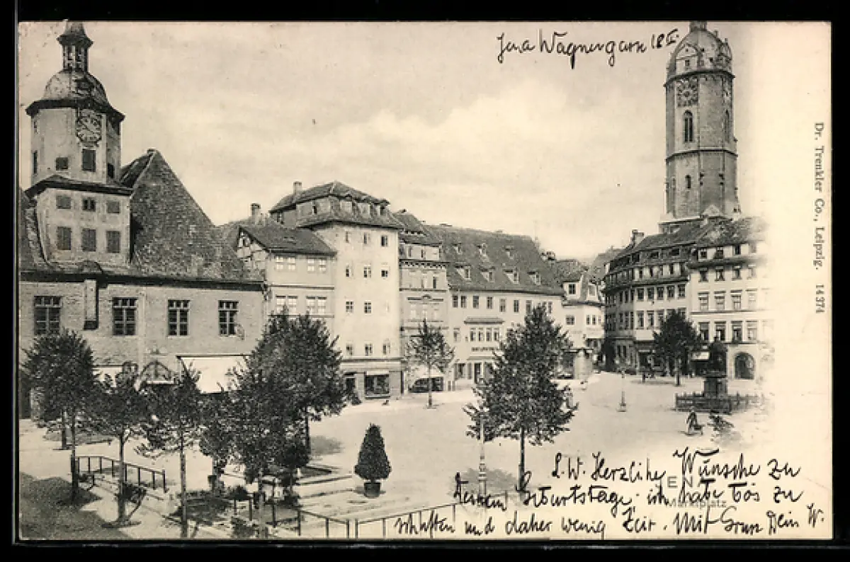 AK Jena, Marktplatz mit Rathaus, Turm