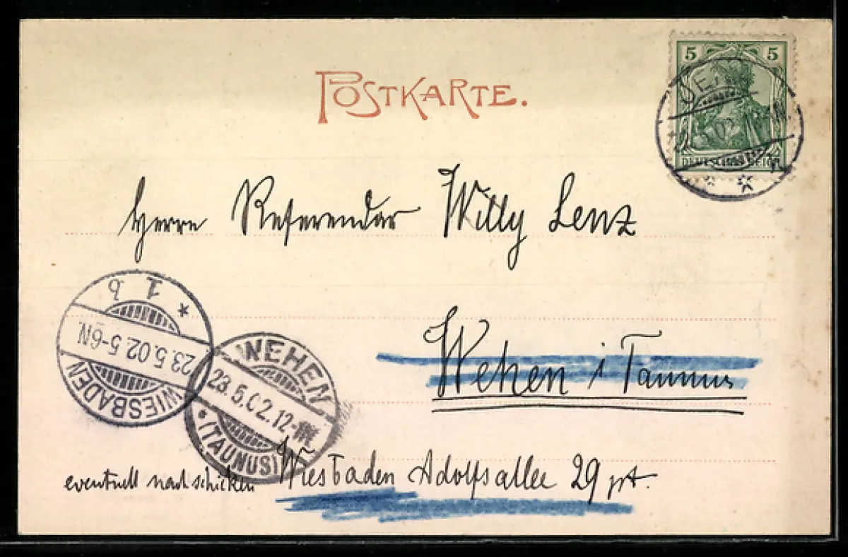 gelaufen 1902, guter Zustand