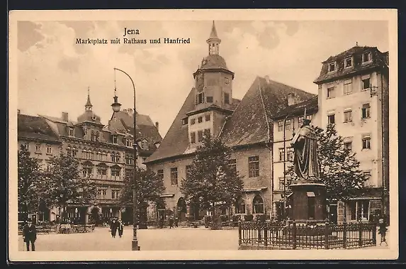 AK Jena, Marktplatz mit Rathaus und Hanfried