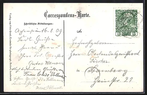 gelaufen 1909, rückseitig Oberflächenschaden, guter Zustand