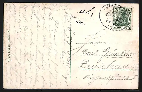alte Ansichtskarte, gelaufen 1910, Eckknick li. unten, guter Zustand