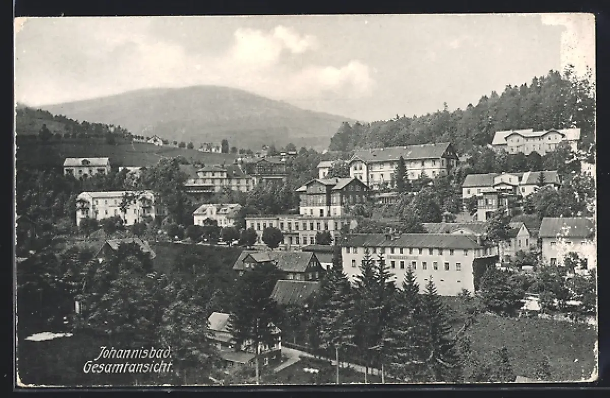 AK Johannisbad, Gesamtansicht aus der Vogelschau, mit Gasthof