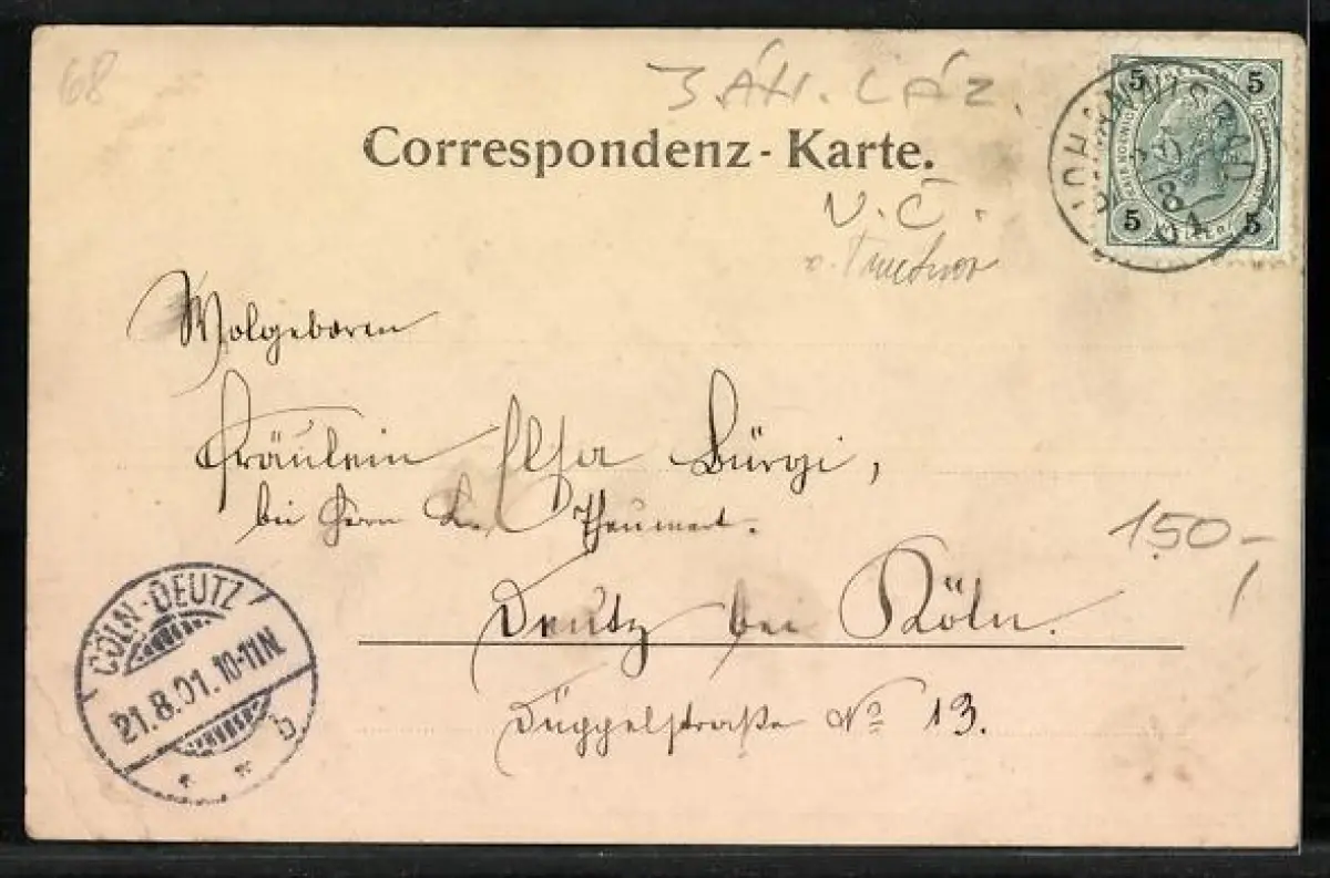 alte Ansichtskarte, gelaufen 1901, Eckknick unten re., guter Zustand