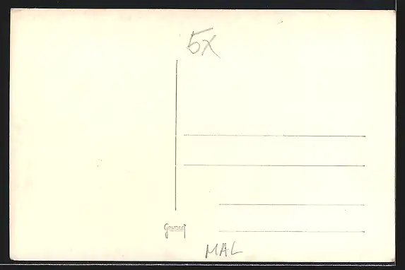 Personenbezogene Daten auf der Rückseite der Karte wurden durch blauen Textmarker unkenntlich gemacht. Die blauen Stellen sind auf die Vorderseite durchgeweicht und wirken sich negativ auf das Postkartenfoto aus