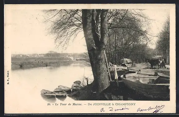 AK Joinville, Le Tour de Marne avec vue sur la rivière et les barques