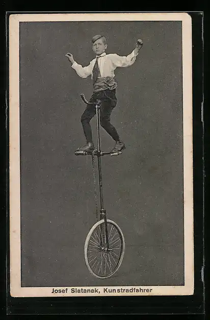 AK Josef Slatanak, Kunstradfahrer auf dem Einrad