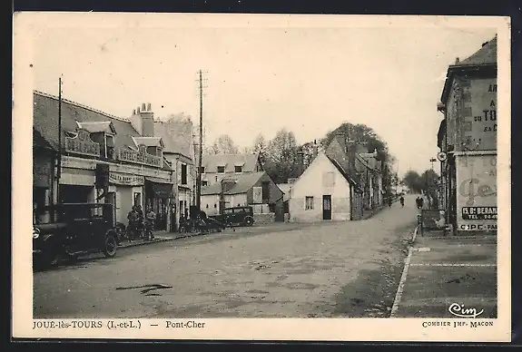 AK Joué-lès-Tours, Pont-Cher avec des bâtiments et une voiture ancienne