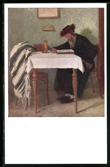 AK Jüdischer Mann in seiner Wohnung ein Buch lesend