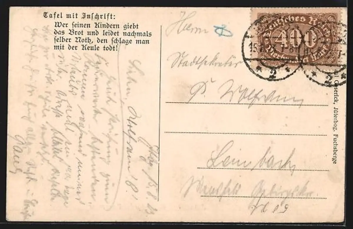 alte Ansichtskarte, gelaufen 1923, guter Zustand