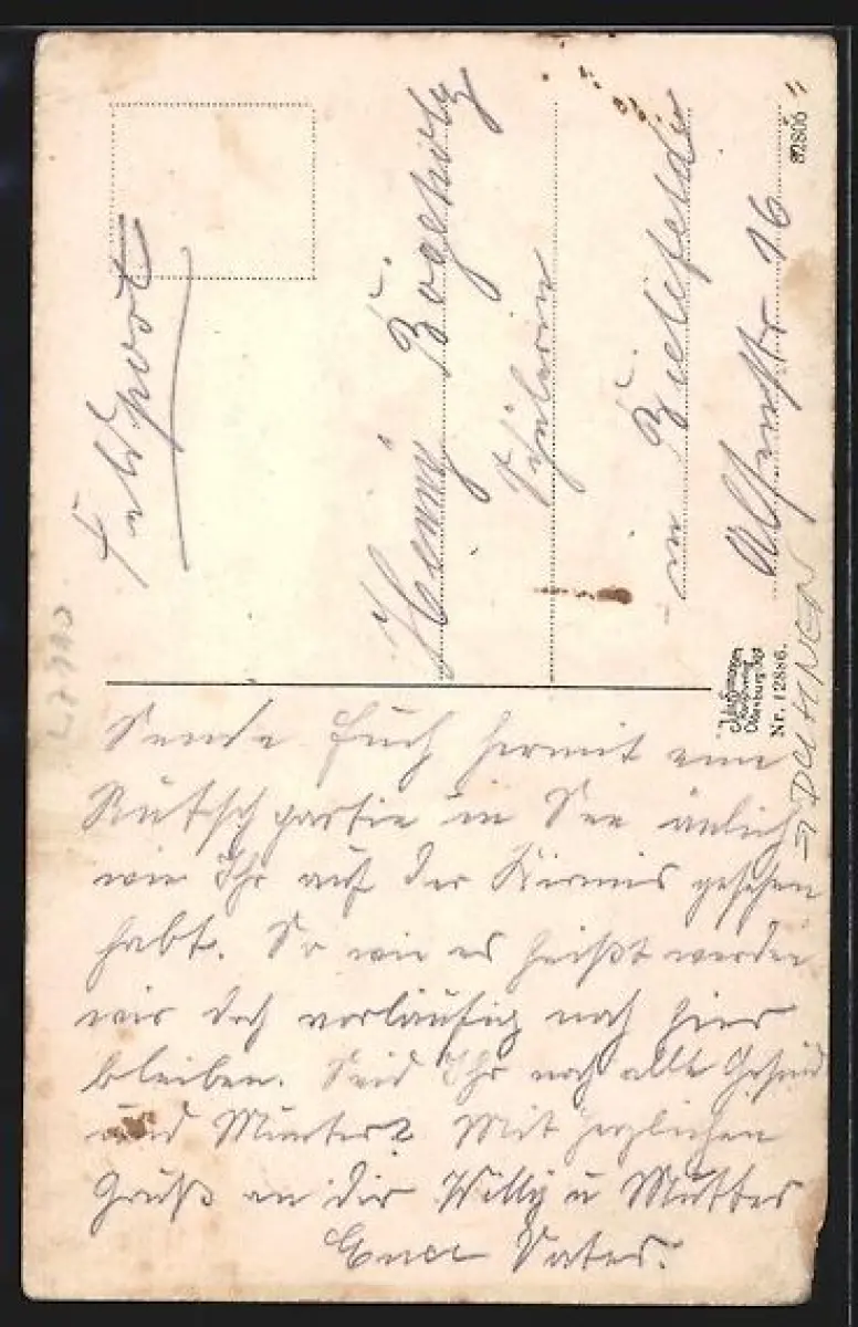 alte Ansichtskarte, gelaufen, Eckknick re. oben, minimaler Eckschaden li. unten