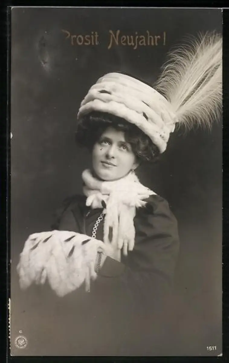 AK Junge Dame mit Hermelinpelz, Neujahrsgruss