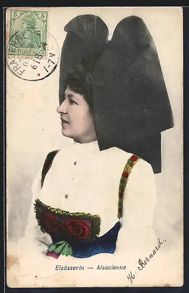 AK Junge Elsässerin mit grosser Schleife in Tracht