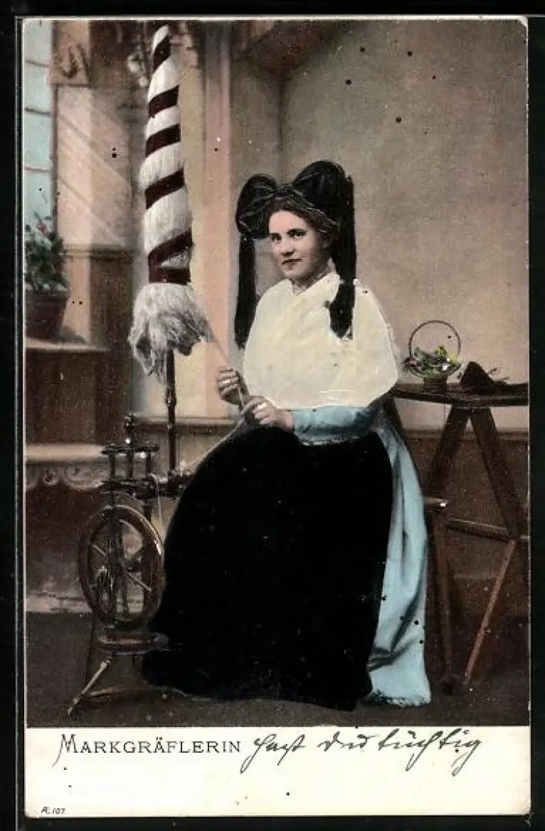 AK Junge Frau am Spinnrad in elsass-lothringischer Tracht