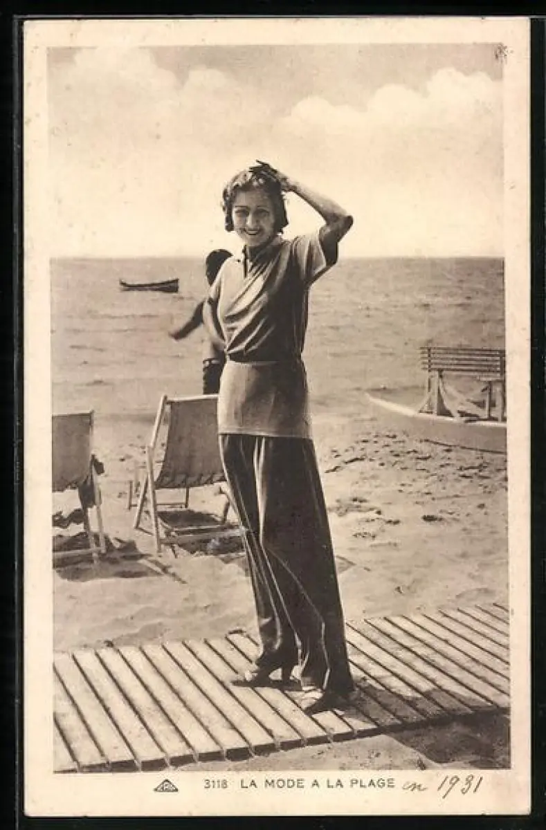 AK Junge Frau in Strandmode