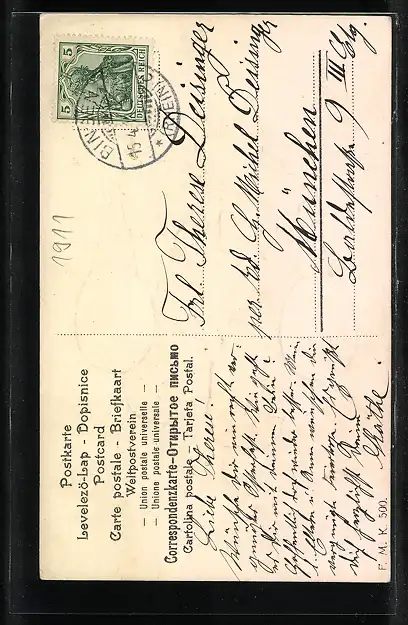alte Ansichtskarte, gelaufen 1911, guter Zustand