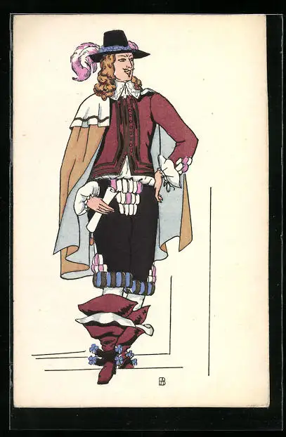 AK Junger Herr in Schaftstiefeln mit Federhut