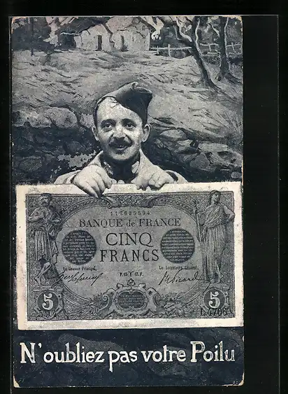 AK Junger Mann mit grossem Geldschein der französischen Bank