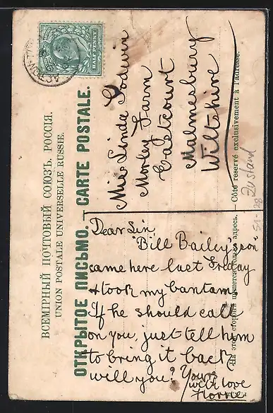 alte Ansichtskarte, gelaufen 1904, Eckknick re. oben, geklebter Einriss oben mittig, guter Zustand