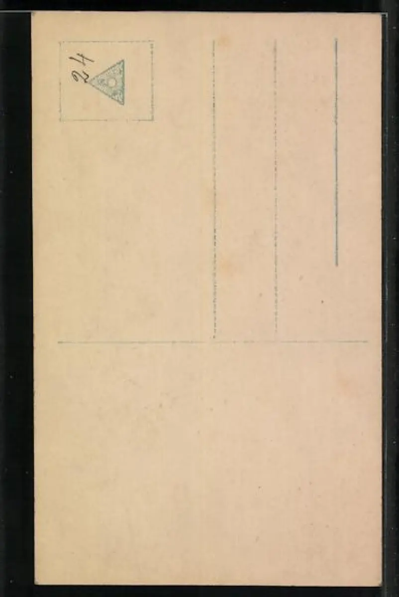 Personenbezogene Daten auf der Rückseite der Karte wurden durch blauen Textmarker unkenntlich gemacht. Die blauen Stellen sind auf die Vorderseite durchgeweicht und wirken sich negativ auf das Postkartenfoto aus