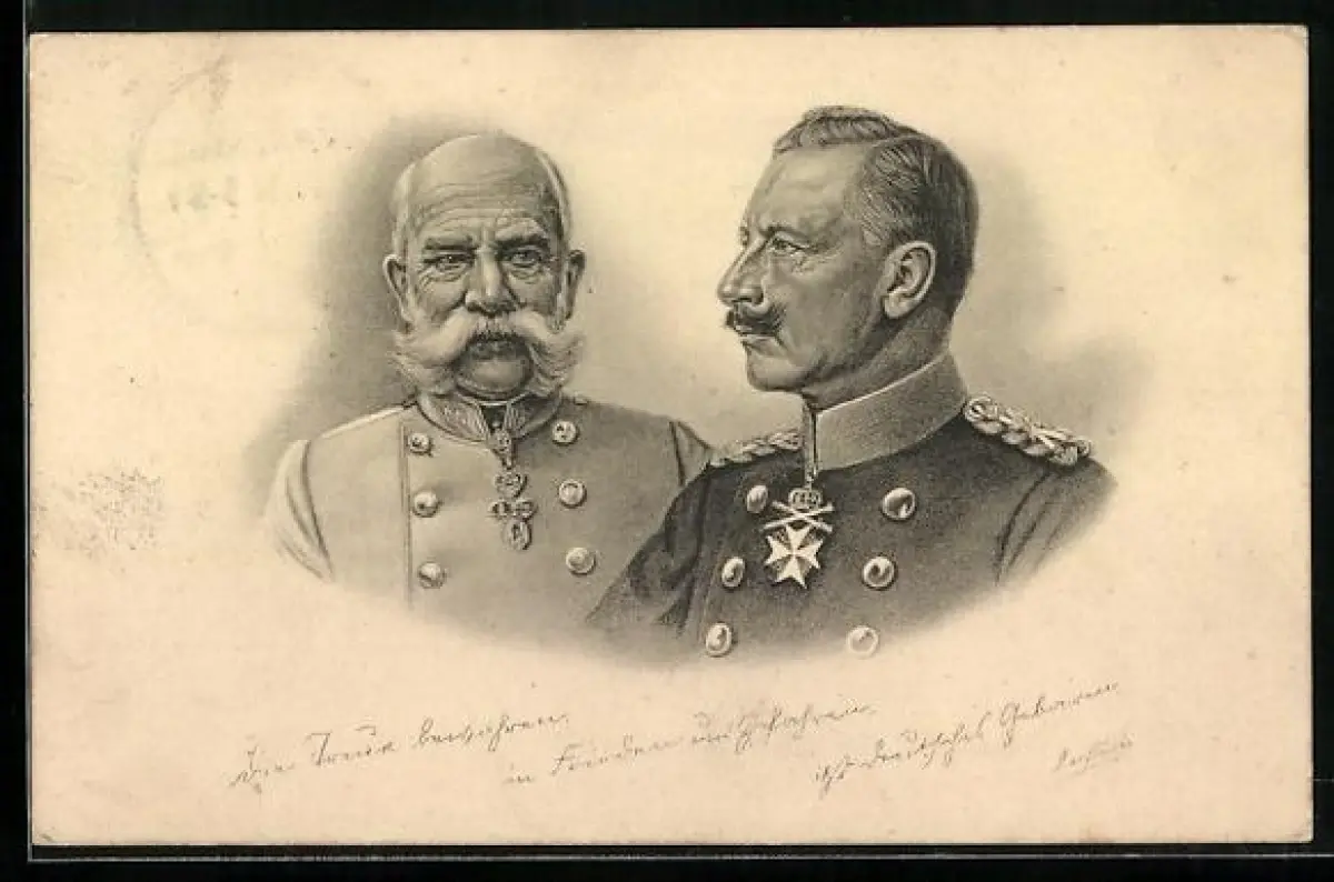 AK Kaiser Franz Josef I. von Österreich, Kaiser Wilhelm II. in Uniform mit Orden