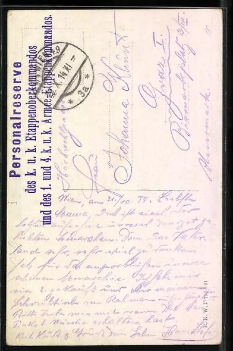 gelaufen 1914, Eckknick re. unten, guter Zustand