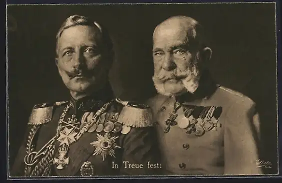 AK Kaiser Franz Josef I. von Österreich und Kaiser Wilhelm II. in Uniform mit Orden