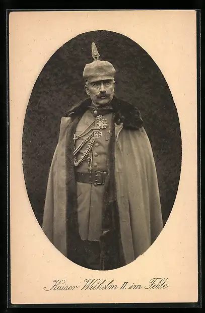 AK Kaiser Wilhelm II. im Felde mit Mantel