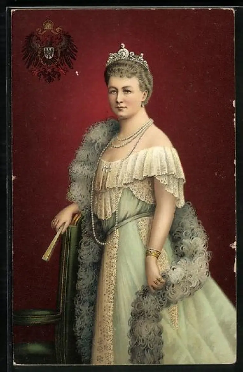 AK Kaiserin Augusta Victoria mit Krone und Fächer