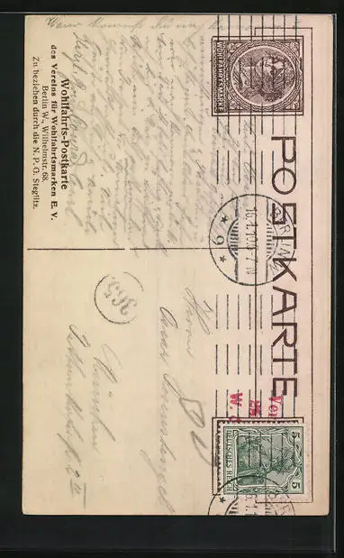 gelaufen 1910, Eckknick re. unten, guter Zustand