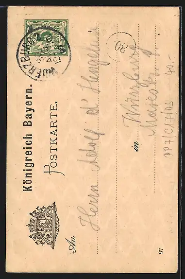 alte Ansichtskarte, gelaufen 1897, guter Zustand