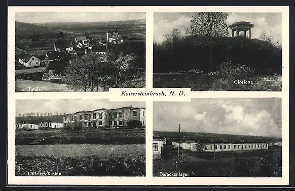 AK Kaisersteinbruch, Partien im Lager, Gloriette, Ortsansicht aus der Vogelschau
